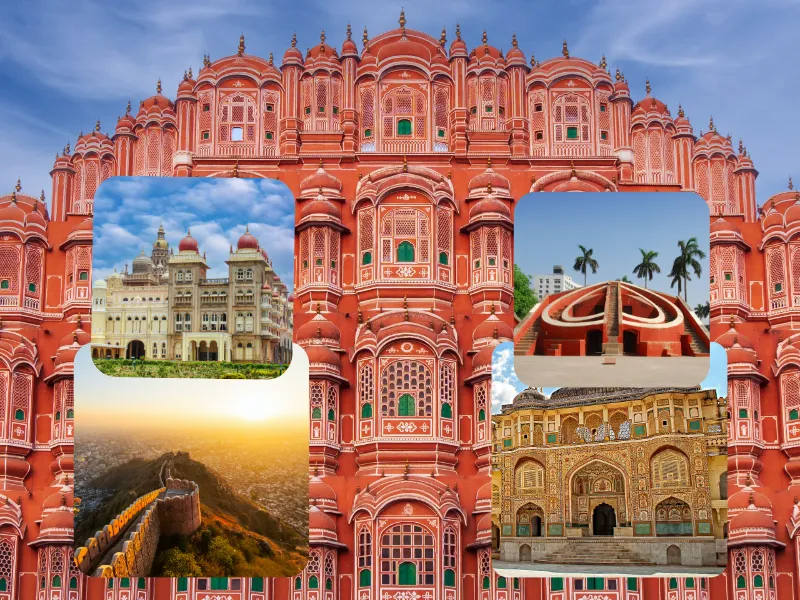 • Hawa Mahal – The iconic "Palace of Winds," famous for its intricate lattice windows.