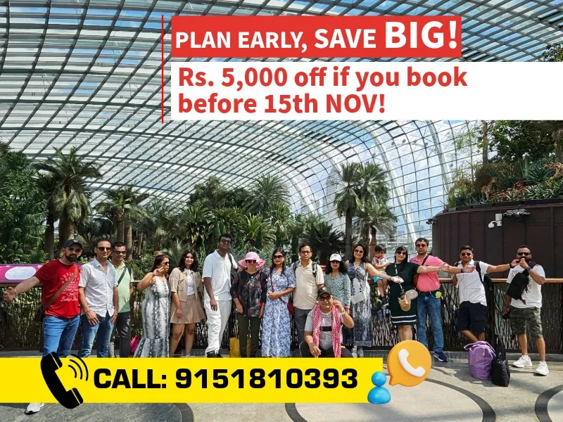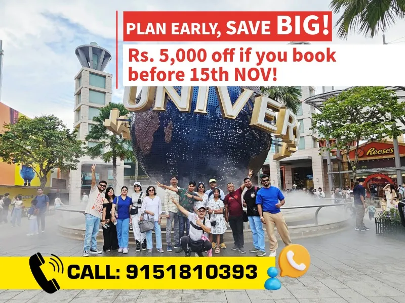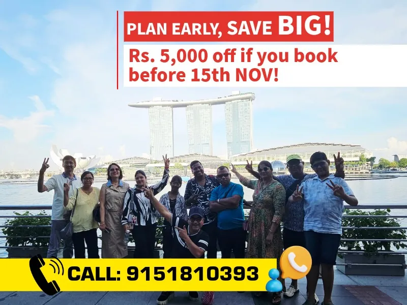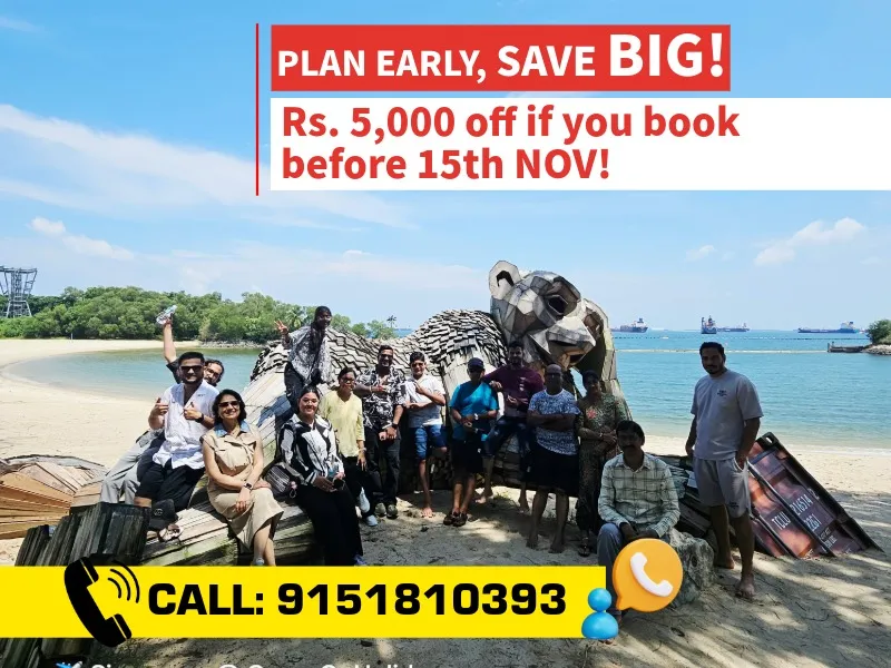 Join Group On Holidays, rated 4.9 out of 5, for a 5-night, 6-day luxury trip to Singapore with owners Nitin Sharma and Poonam Sharma. Travel from Chennai to the vibrant city of Singapore, set sail on a Singapore Cruise Adventure and explore its iconic landmarks, thrilling attractions, and world-class shopping. Get a chance to visit Malaysia & witness all the amazing sight seeing. Enjoy a comfortable flight, premium stays, and exclusive experiences at top destinations like Universal Studios, Sentosa Island, and Marina Bay Sands. After an unforgettable journey, return to Chennai with incredible memories. This trip is designed for your comfort and luxury every step of the way!