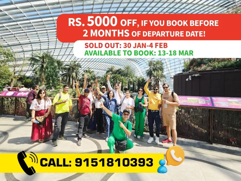 Join Group On Holidays, rated 4.9 out of 5, for a 5-night, 6-day luxury trip to Singapore with owners Nitin Sharma and Poonam Sharma. Travel from Kolkata to the vibrant city of Singapore, set sail on a Singapore Cruise Adventure and explore its iconic landmarks, thrilling attractions, and world-class shopping. Get a chance to visit Malaysia & witness all the amazing sight seeing. Enjoy a comfortable flight, premium stays, and exclusive experiences at top destinations like Universal Studios, Sentosa Island, and Marina Bay Sands. After an unforgettable journey, return to Kolkata with incredible memories. This trip is designed for your comfort and luxury every step of the way!